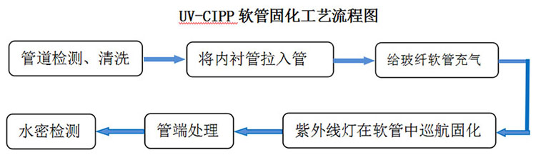 The in-situ repair of non excavated pipelines (CIPP) ultraviolet light curing technology refers to the use of UV-CIPP lined hoses pulled into the pipeline to be repaired from the wellhead, tied at both ends of the hose, and then compressed air is injected to support the hose and make it tightly adhere to the inner wall of the pipeline. Through ultraviolet irradiation, the inner lining of the pipeline is rapidly cured and shaped, forming a non excavation pipeline repair technology called "pipe in pipe". Partial repair is possible, and non excavation saves labor costs, time costs, and longer pipeline service life. After pipeline repair, there is no need for manual cleaning and normal drainage can be achieved.